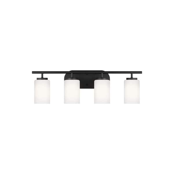 Oslo 27.5 in. 4-Light Midnight Black Transitional Contemporary Bathroom Vanity Light with Cased Opal Etched Glass Shades