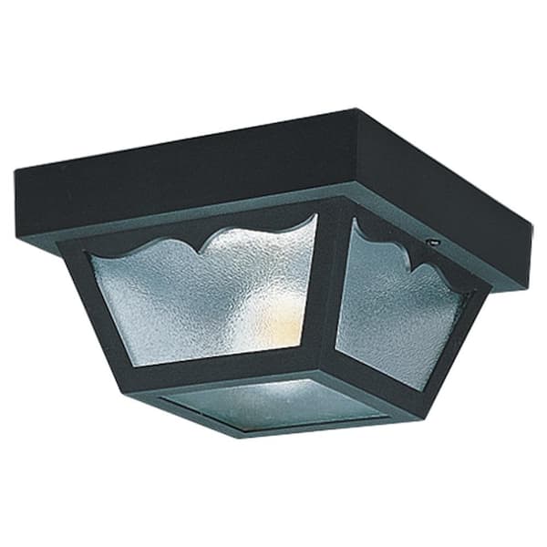 Outdoor Ceiling 1-Light 8.25 in. W Black Plastic Square Flush Mount Ceiling Fixture with Clear Textured Glass Shade