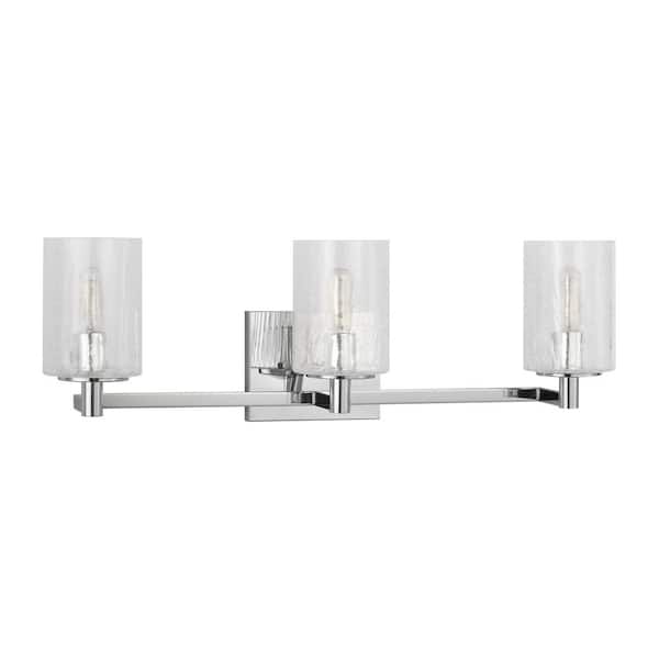 Parker 24.625 in. W x 7.75 in. H 3-Light Chrome Bathroom Vanity Light with Clear Crackle Glass Shades