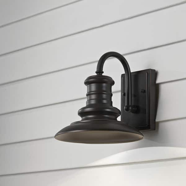 Redding Station 1-Light Restoration Bronze Outdoor 9.6875 in. Integrated LED Wall Lantern Sconce