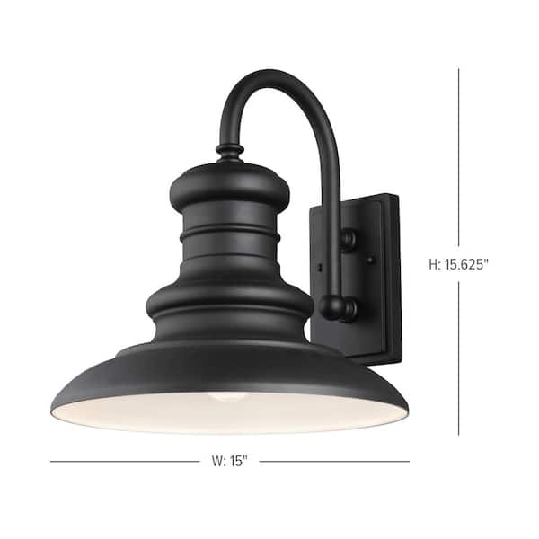 Redding Station 15 in. 1-Light Textured Black Outdoor 15.625 in. Wall Lantern Sconce