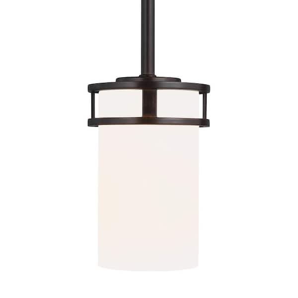 Robie 1-Light Burnt Sienna Craftsman Mini Pendant with Etched/White Inside Glass Shade