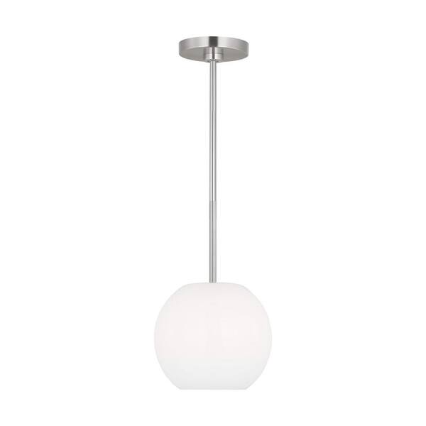 Rory 8.375 in. 1-Light Brushed Steel Pendant Light with a Clear Outside and Painted White Inside Glass Shade
