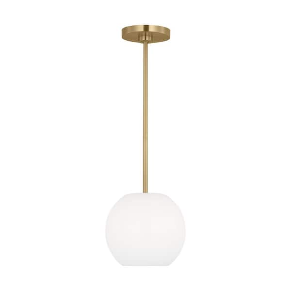Rory 8.375 in. 1-Light Satin Bronze Pendant Light with a Clear Outside and Painted White Inside Glass Shade