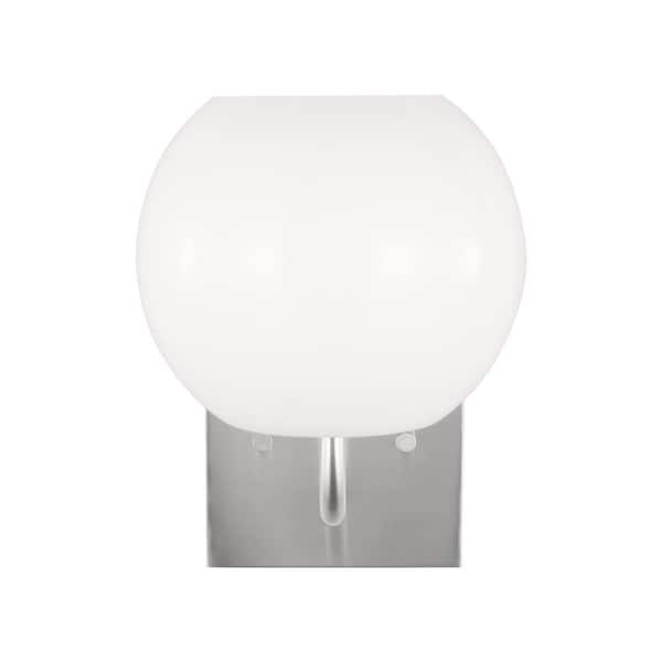 Rory Small 6.825 in. 1-Light Brushed Steel Bathroom Vanity Light with an Opal Glass Shade