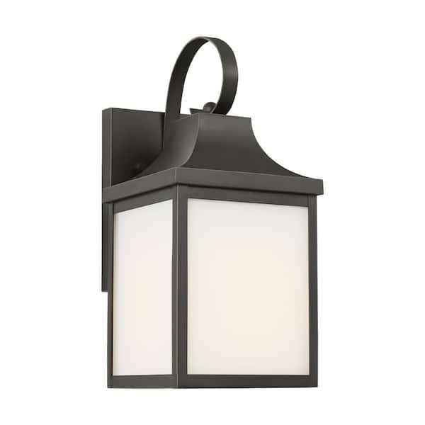 Saybrook 13 in. Antique Bronze Outdoor Hardwired Small Wall Lantern Sconce with Glass Shade and No Bulbs Included