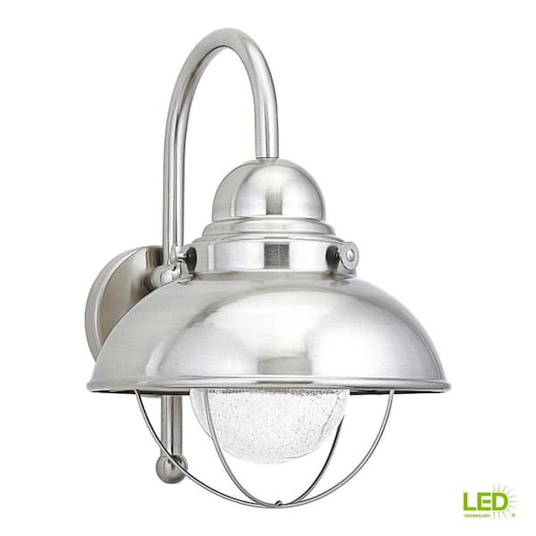 Sebring Brushed Stainless Outdoor 15.75 in. Industrial Nautical Integrated LED Wall Lantern Sconce