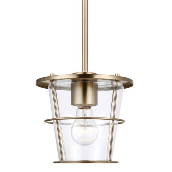 Tex 1-Light Satin Brass Cage Hanging Pendant with Clear Glass Shade