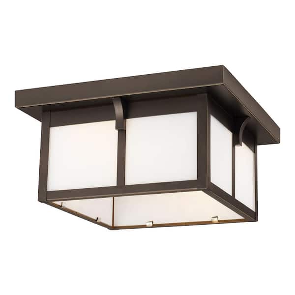 Tomek 2 -Light Antique Bronze Outdoor Urban Craftsman Flush Mount Light