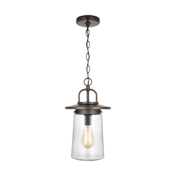 Tybee 1-Light Antique Bronze Outdoor Pendant Light with Clear Glass Shade