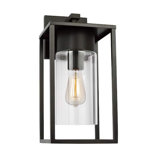 Vado Large 1-Light Antique Bronze Hardwired Outdoor Wall Lantern Sconce with Clear Glass Shade
