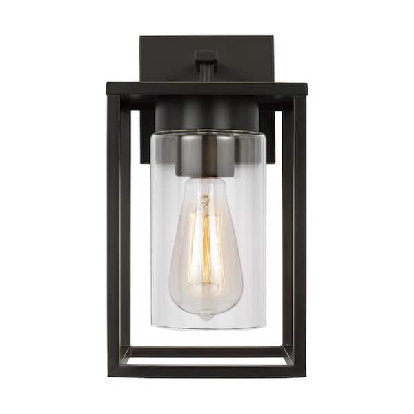 Vado Small 1-Light Antique Bronze Hardwired Outdoor Wall Lantern Sconce with Clear Glass Shade