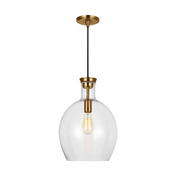 Vaso 12 in. W x 17.375 in. H 1-Light Burnished Brass Dimmable Medium Pendant Light with Clear Glass Shade