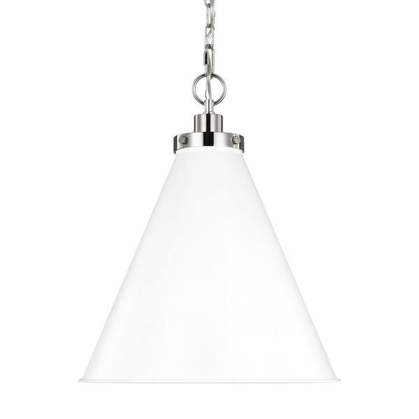 Wellfleet 15.625 in. W x 19 in. H 1-Light Matte White/Polished Nickel Medium Cone Pendant Light with White Steel Shade