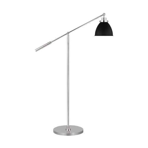 Wellfleet 30.75 in. W x 46 in. H 1-Light Midnight Black/Polished Nickel Dimmable Standard Floor Lamp with Steel Shade