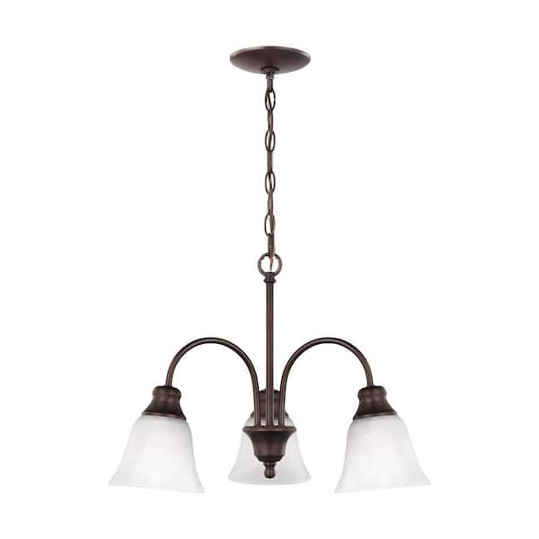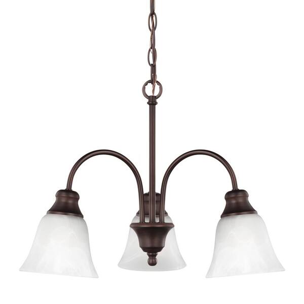 Windgate 20 in. 3-Light Bronze Classic Traditional Hanging Single Tier Empire Chandelier with Alabaster Glass Shades