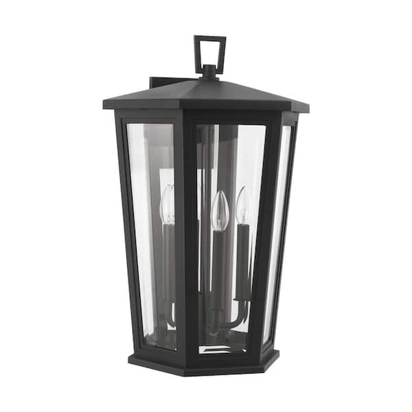 Witley Extra Large Textured Black StoneStrong Outdoor Wall Lantern with Clear Beveled Glass