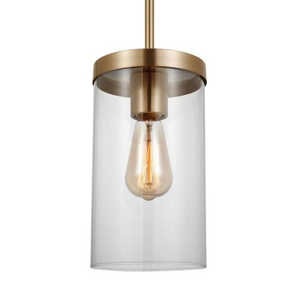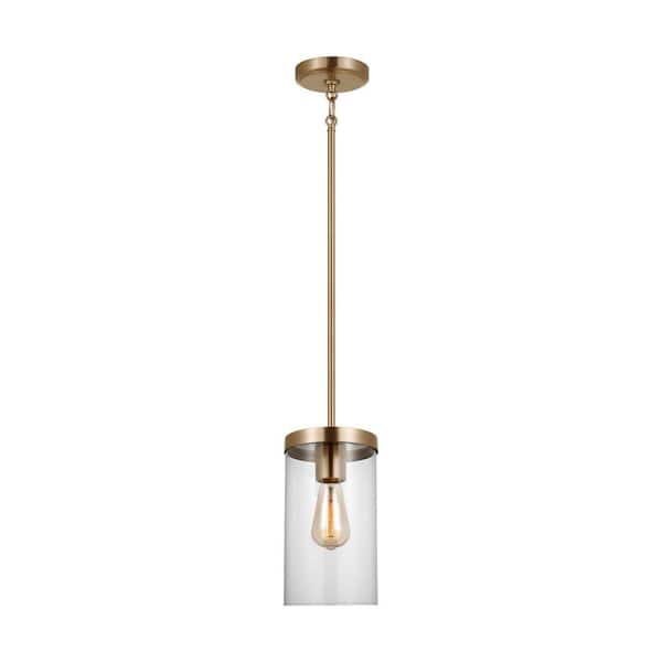 Zire 1-Light Satin Brass Dimmable Shaded Pendant with Clear Glass Shade