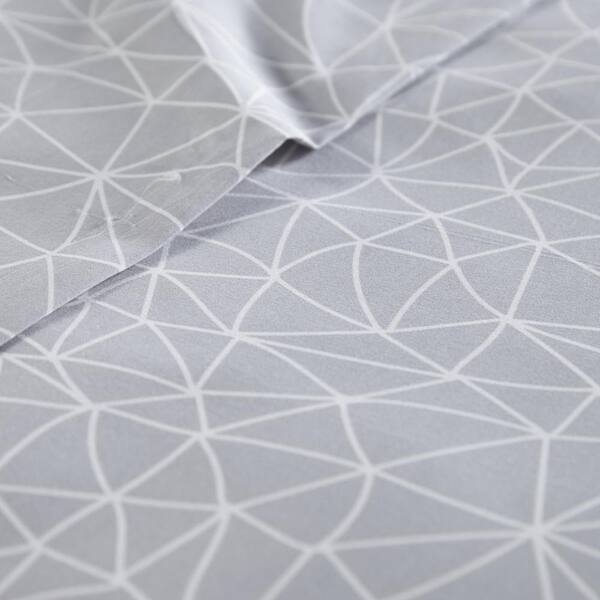 Geometric Maze 4-Piece White Maze on Grey Microfiber California King Sheet Set