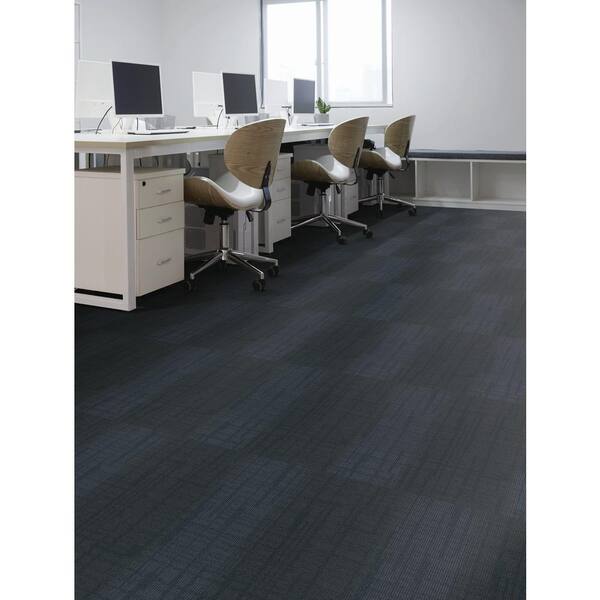 • Commercial grade, gray & blue low-pile indoor carpet tile
