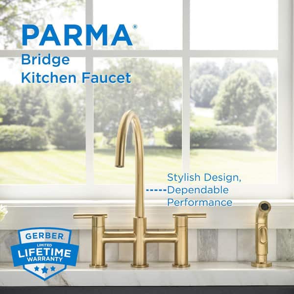 Parma Double Handle Deck Mount Bridge Kitchen Faucet with Spray with 1.75 GPM in Brushed Bronze