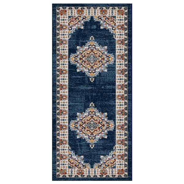 Alor Khelo Blue 3 ft. x 8 ft. Oriental/Medallion Indoor Runner Rug