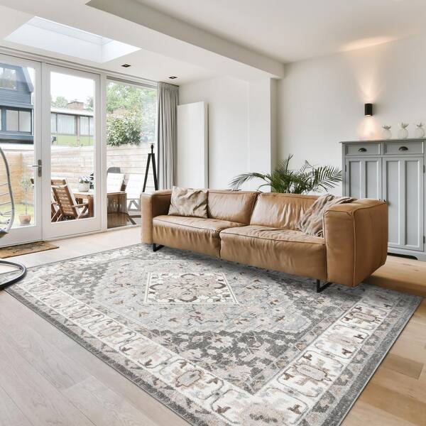 Alor Zia Gray 6 ft. x 9 ft. Oriental/Medallion Indoor Area Rug