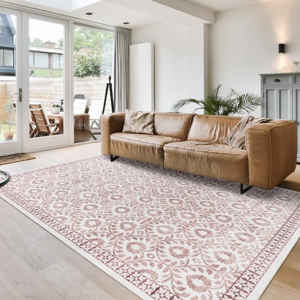 Crystal Print Esme Ivory/Tan 5 ft. x 7 ft. Floral Digitally Printed Polyester Area Rug