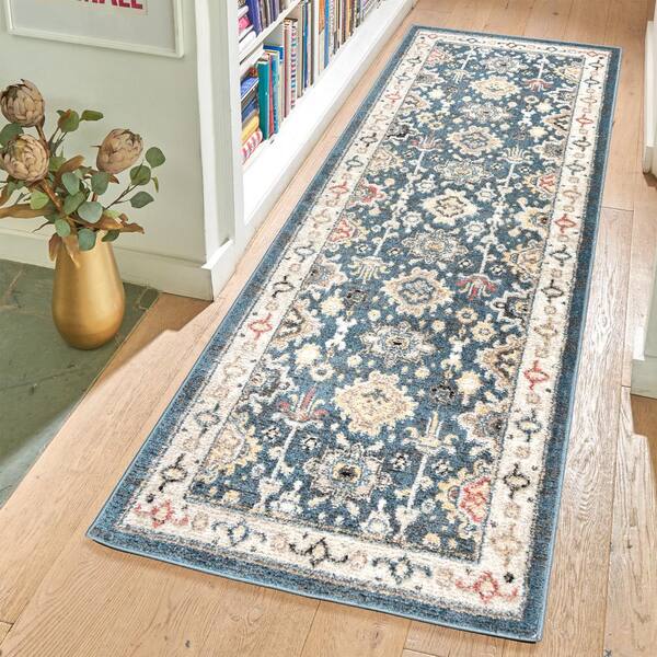 Heirloom Hadley Blue 3 ft. x 8 ft. Oriental Border Indoor Runner Rug