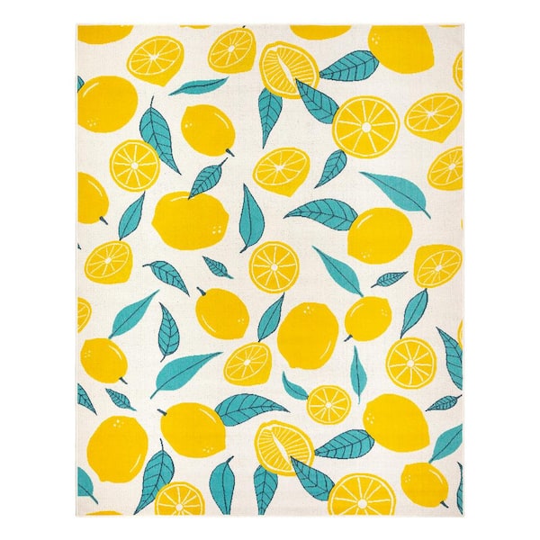 Jona Yellow 6 ft. x 9 ft. Lemons Floral Indoor/Outdoor Area Rug