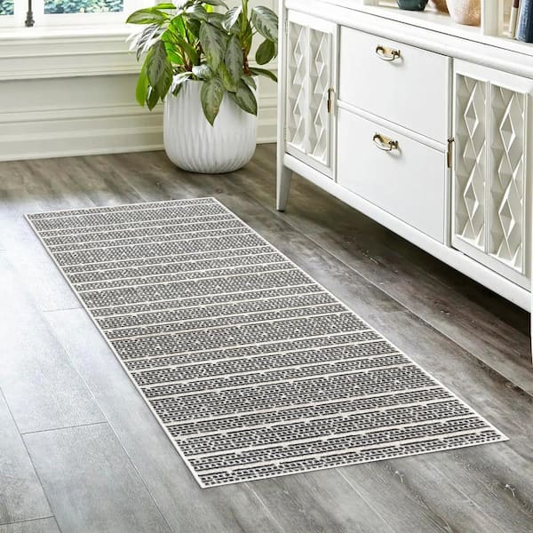 Missha Dario Beige/Black 2 ft. x 8 ft. Striped High-Low Indoor Runner Rug