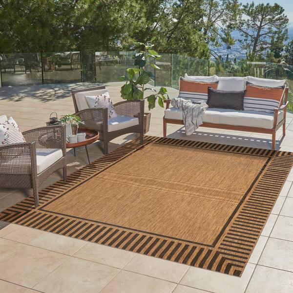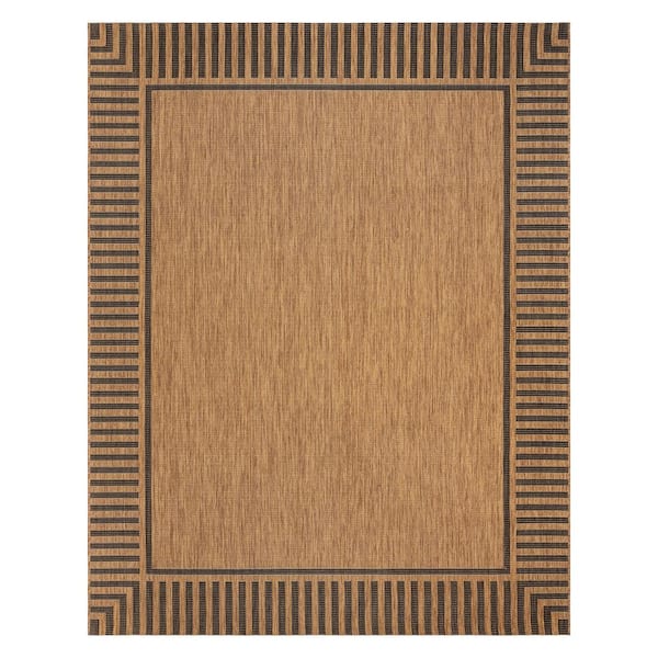 Paseo Kiano Chestnut/Black 9 ft. x 13 ft. Striped Border Indoor/Outdoor Area Rug