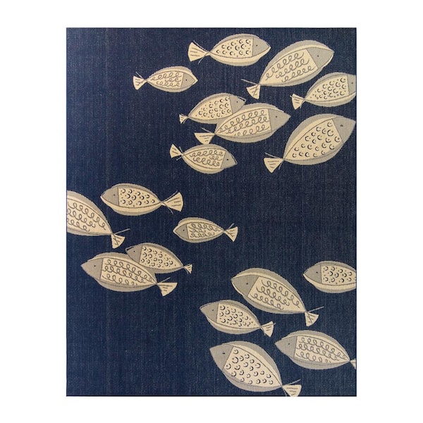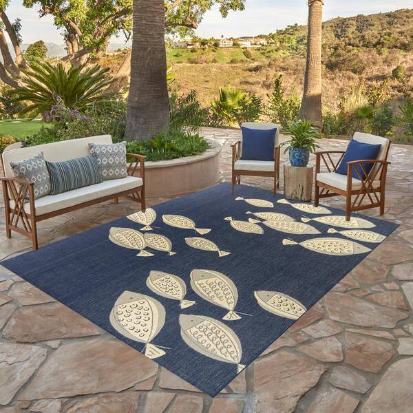Paseo Loutro School of Fish Navy/Grain 8 ft. x 10 ft. Indoor/Outdoor Area Rug