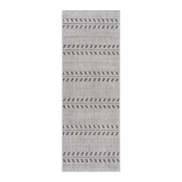 Paseo Moran Stripe Ash/Steel 2 ft. x 6 ft. Striped Indoor/Outdoor Runner Rug