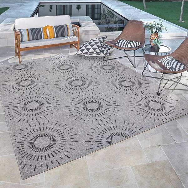 Paseo Tiaret Gray 5 ft. x 7 ft. Geometric Indoor/Outdoor Area Rug