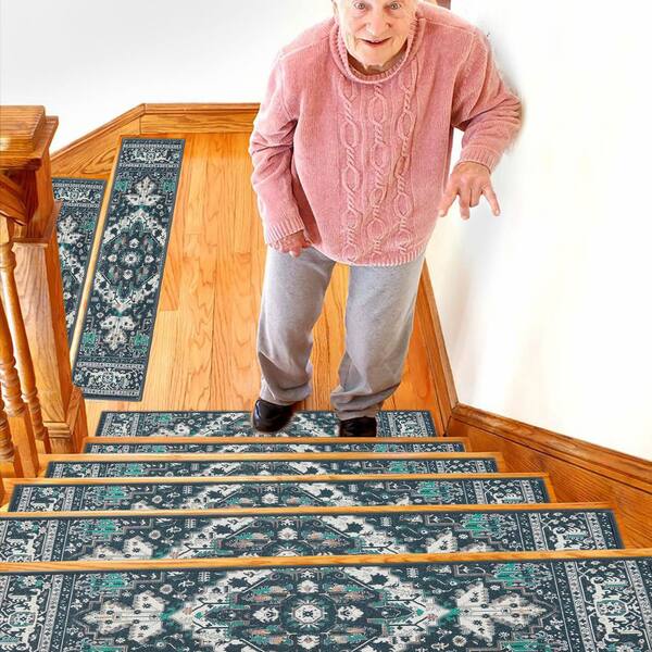 Gery Blue 8 in. x 30 in. Polyester Stair Tread Cover (Set of 15)