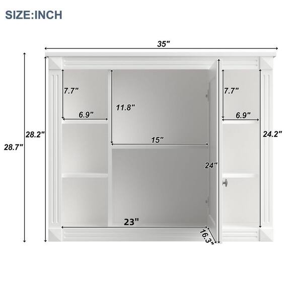 35 in. W x 28 in. H Wall Mounted White Storage Cabinet Modern Bath Cabinet MDF Rectangular Medicine Cabinet with Mirror