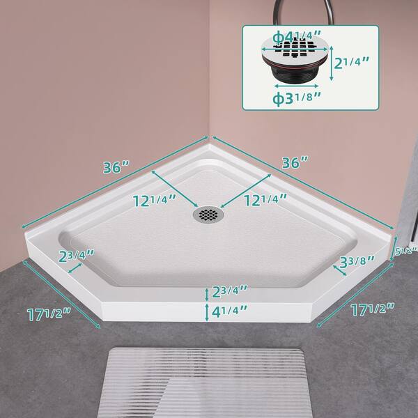 36 in. L x 36 in. W Neo Angle Corner Shower Pan Base with Corner Drain Shower Floor Pan in White Acrylic Shower Tray