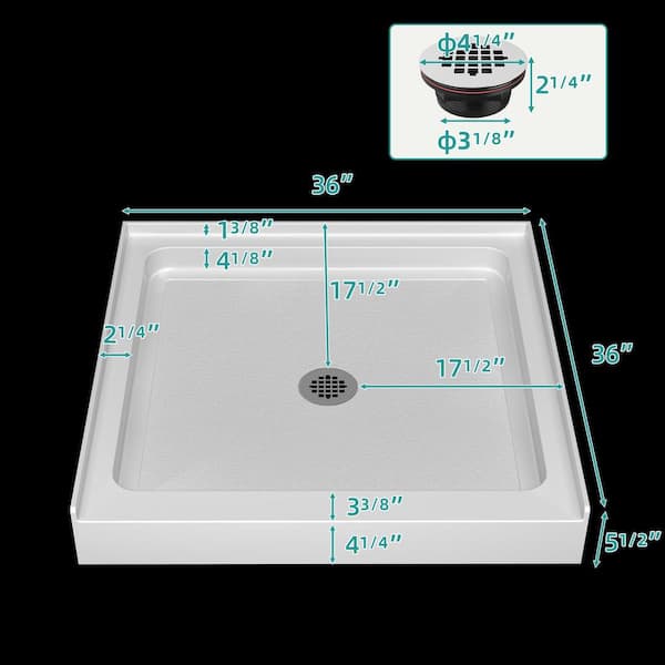 36 in. L x 36 in. W Single Threshold Alcove Shower Pan Base with Center Drain White Square Acrylic Base for RV/Bathroom