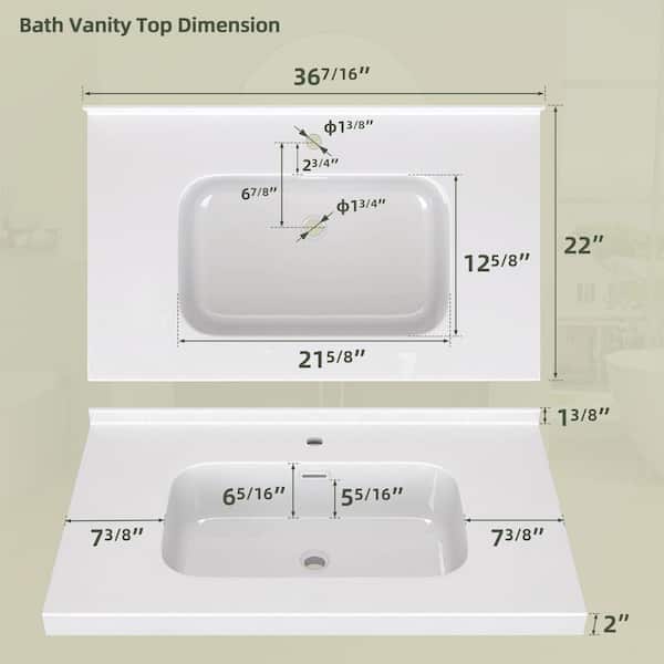 36 in. W x 22 in. D Solid Surface White Rectangular Single Sink Bath Vanity Top and Basin for 36 in. Bathroom Cabinet
