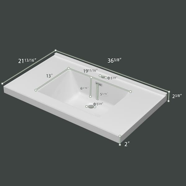 36 in. W x 22 in. D Solid Surface White Rectangular Single Sink Bathroom Vanity Top for 36 in. Bathroom Cabinet