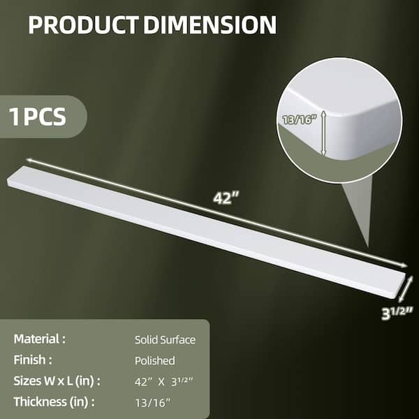 42 in. W x 3.5 in. H Solid Surface Vanity Backsplash in White Bathroom Vanity Back Panel