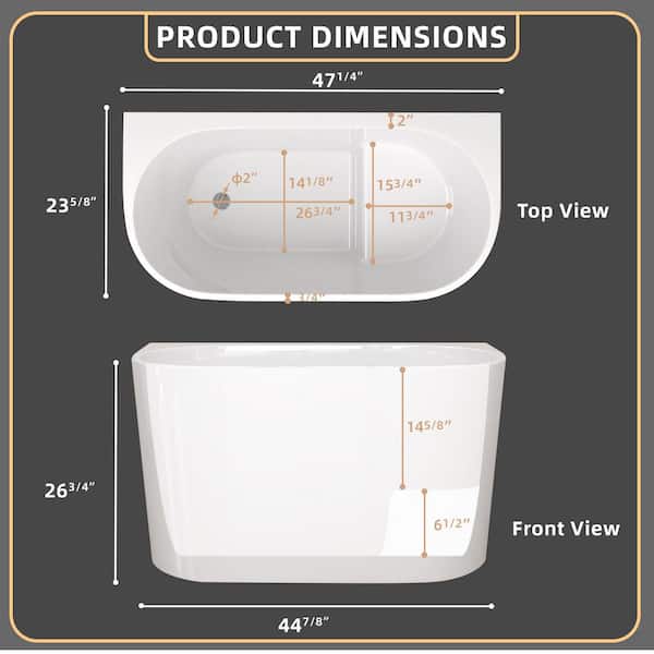 • 47 in bathtub offers 2 installation options:freestanding,mid-wall