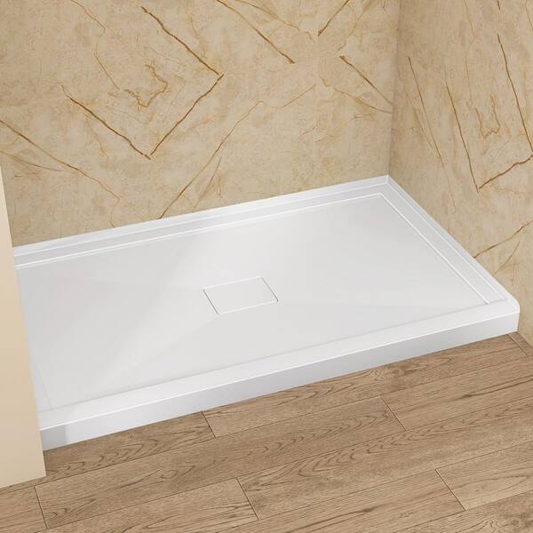 60 in. L x 36 in. W Single Threshold Alcove White Shower Pan Base Acrylic Rectangular Shower Tray with Center Drain