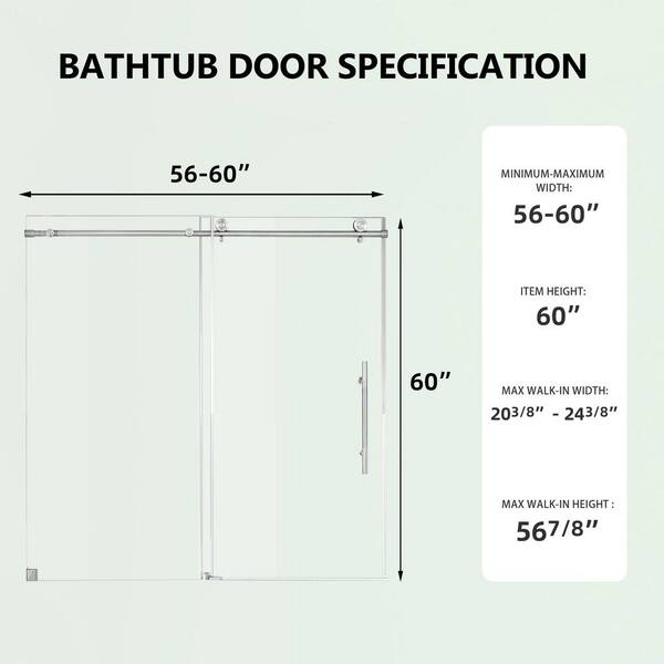 60 in. W x 60 in. H Single Sliding Frameless Tub Door in Brushed Nickel with 5/16 in. (8 mm) Clear Tempered Glass