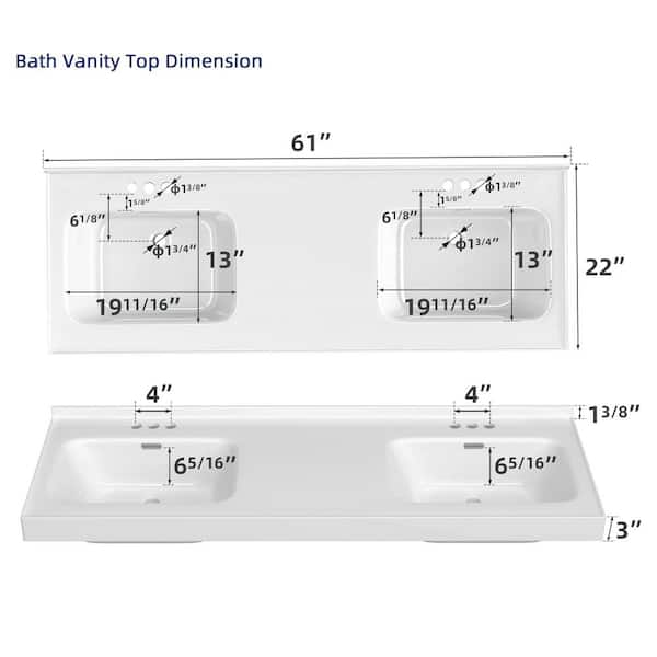 • 61in. W x 22 in. D x 9.45 in. H 1-piece single-sink vanity top