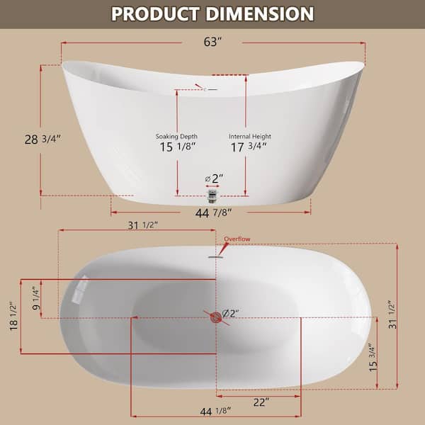 • 63 in.oval-shaped freestanding bathtub effective capacity:65 gal.