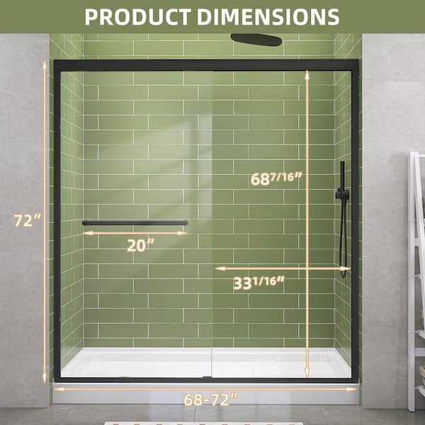 68-72 in. W x 72 in. H Double Sliding Semi-Frameless Shower Door in Matte Black Bypass Door with 1/4 in. Clear Glass