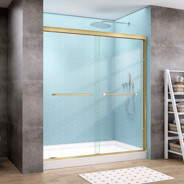 68-72 in. W x 72 in. H Double Sliding Semi-Frameless Shower Door in Matte Brushed Gold with 1/4 in. Clear Glass