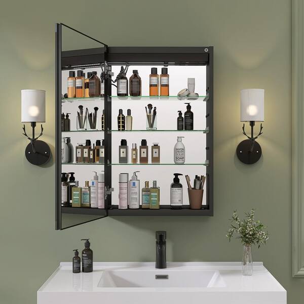 Lume 20 in. W x 30 in. H Rectangular Black Aluminum Recessed or Surface Mount Smart LED Medicine Cabinet with Mirror
